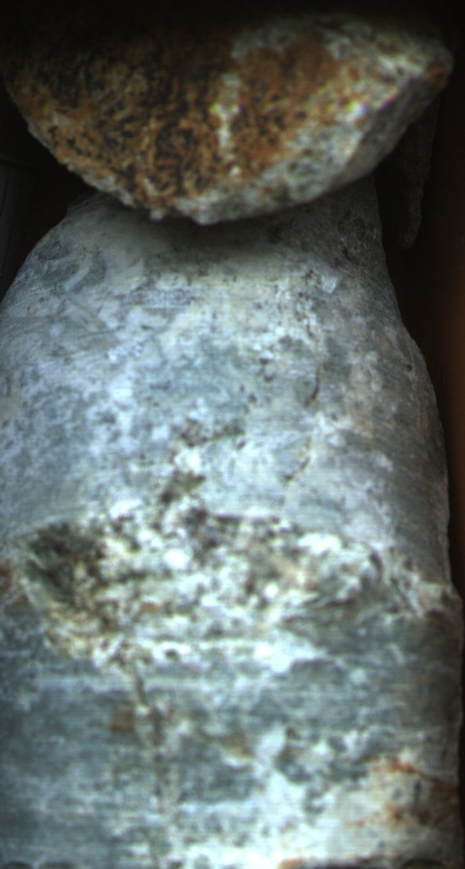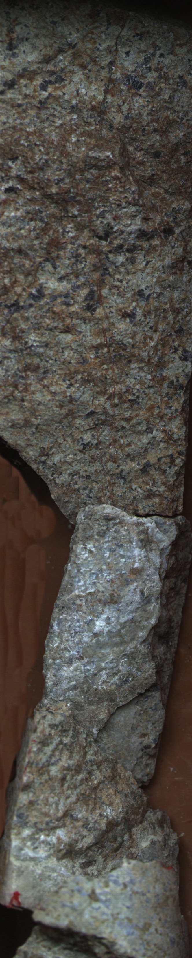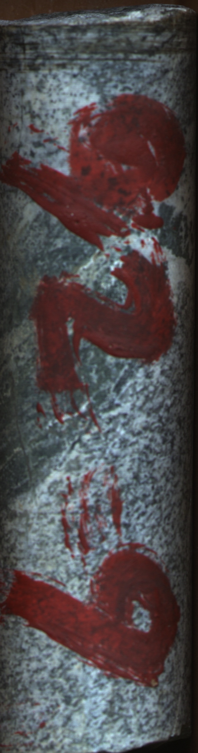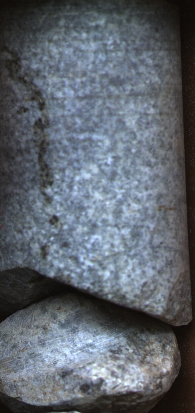 | 379.41 | 382.73 | 混合岩 | 灰黑色,岩石裂隙发育,晶洞内有方解石晶簇。岩石具绿泥石化,见有磁黄铁矿。 |