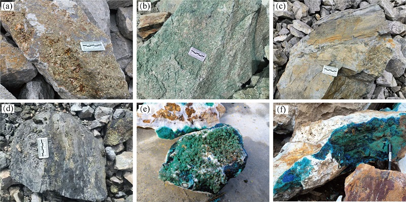 日前,自然资源实物地质资料中心联合西藏自治区土地矿权交易和资源储量评审中心,在玉龙斑岩铜(钼)矿采集大型标本4件、系列标本70余件(图1、2),系统涵盖了矿区典型矿石类型、主要围岩和地层等地质特征。